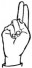 На ћирилици написано ВАЊА ЈОВАНЧЕВИЋ састоји се из 14 слова [?]. Исписано ћириличном једноручном азбуком за глувонеме: